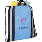 The Small Reflective Drawstring Bag has an open main compartment with a cinching rope closure and cool reflective stripes.