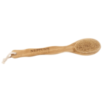 The Bamboo Shower and Body Brush is a long handle brush with natural exfoliating bristles on one side & large wooden massaging bristles on the opposite side. Use in the shower, use dry to exfoliate skin, and/or use the large bristles to massage the skin. Includes cotton rope accessory to hang dry. Be sure to allow brush to dry completely for longest life. Due to the nature of bamboo material, variations in color will occur. Leed's Exclusive.