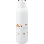 The Marka Copper Vacuum Insulated Bottle features durable, double-wall stainless steel vacuum construction with copper insulation, which allows your beverage to stay cold for 48 hours and hot for at least 12 hours. The construction also prevents condensation on the outside of the bottle. Comes complete with the on-trend, durable, smooth-touching powder coated appearance and a screw-on, spill resistant lid and a durable, zinc-alloy hand loop. Fits most standard car cup holders. Leed's exclusive. 20oz.