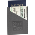 Premium, textured UltraHyde material. Specifically designed to hold a passport, 4 credit cards and a boarding pass/ticket. RFID protection.