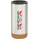 With the skid-proof cork look featured bottom design, your next promotion will be sure to stand out. Durable, double-wall stainless steel vacuum construction with copper insulation, which allows your cold beverage to stay cold for 24 hours and at least 8 hours for hot beverages. The construction also prevents condensation on the outside of the piece. Fits most standard car cup holders. Leed's Exclusive. 16oz.