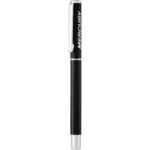 Exclusive Leed's design. Plush vinyl wrapped bottom barrel with matte black upper barrel and chrome accents. Pen includes premium black roller ball ink cartridge. Complement to the Pedova Journal.