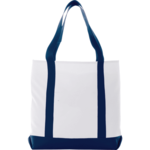 Classic boat tote look in 600d PolyCanvas. Open main compartment and front slash pocket. 12" drop handles.