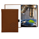 Elevate your brand with this semi custom bound journal. Features ribbon page markers, elastic pen loop and 125 sheets of lined paper. Customizable full color graphic page insert and oversized blind deboss decoration included in pricing.
