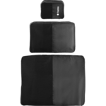 The Packing Cube 3pc set includes 3 different sized packing cubes. Each cube has an additional sleeve that allows piece to be compressed and folded into the pouch. Pouch sizes: Small 8.5"H x 6.5"W x 3.75"D, Medium 16"H x 10.5"W x 4"D, Large 20.5"H x 16"W x 4.25"D. Medium and Large sizes will pack into small size during shipping.