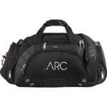 Zippered main compartment with U-shaped opening. Front top media pocket with earbud port. Large zippered front pocket includes removable techtrap organizer panel and pocket organization. Large ventilated side pocket holds shoes or damp garments. Additional side zippered accessory pocket with exterior elastic shock cord for maximum storage. Handles made of durable webbing with comfortable handle wrap. Padded, detachable, adjustable shoulder strap. Signature elleven™ lining and hardware. Free run charges for embroidery up to 7500 stitches.