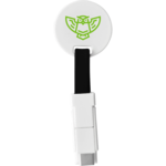 The Pongo 3-in-1 Magnetic Cable comes with a cable that contains a USB A port on one side, a 2-in-1dual compatible tip for both Apple® iOS and Android device and a Type C adaptor for Android devices on the other side with 2A current. The cable can be magnetically connected with a plastic disc.
