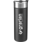 Double-wall, copper vacuum insulated, stainless steel construction. Keeps drinks hot for 8 hours and cold for 24 hours. Stainless, screw-on lid with flap-seal closure. Fits most standard car cup holders. 18oz.