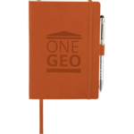 Set includes (2700-67) Revello Soft Bound JournalBook with (1065-08) Preston Dual Ballpoint Stylus with built in elastic closure. Ribbon page marker.Pen loop. Document pocket on interior back cover. Includes 80 sheets of cream lined paper. Free laser set up on metal pen!