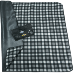 This blanket is not only perfect for picnics but also great for the beach or any outdoor event. Easily rolls up with hook-and-loop closure and convenient carrying handle. Features two speakers that are compatible with most iPhones, iPods, iPads, smartphones, tablets and mp3 players. Zippered pocket inside holds battery box that uses four AA batteries(not included). Water-resistant backing.